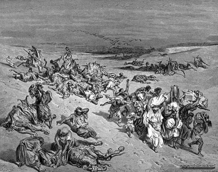 В этот же период грянула «моровая язва весьма тяжкая», то есть, какая-то эпидемия: «и сделалось воспаление на людях и на скоте» (9:3,10).