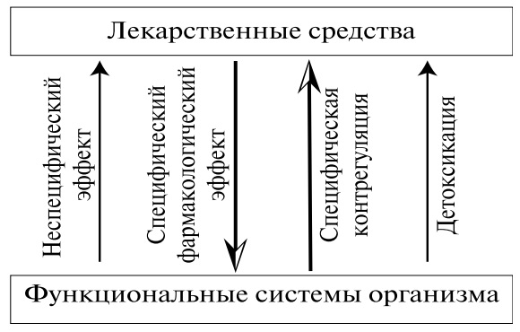 Одним из основных принципов фармакотерапии является положение, сформулированное академиком Н. В. Лазаревым: никогда нельзя рассматривать эффект лекарственного препарата, как его действие на определенные структуры организма – это всегда взаимодействие лекарства и организма, поздразумевающее обязательную ответную адекватную реакцию на воздействие чужеродного для него вещества.
