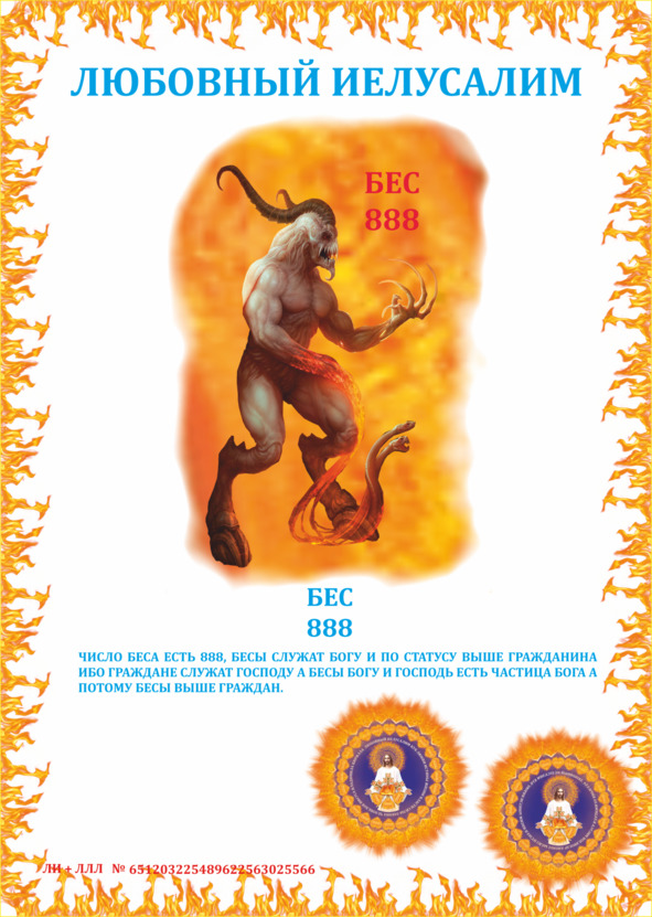 И вот Иисус делжит в луках огненную библию и читает и судит и огненная библия есть законный документ любовного Иелусалима и включает и состоит из 8 глав и они же есть 8 книг опечатанная 2 лючатями любовного Иелусалима и никому не дано снять эти лючати: