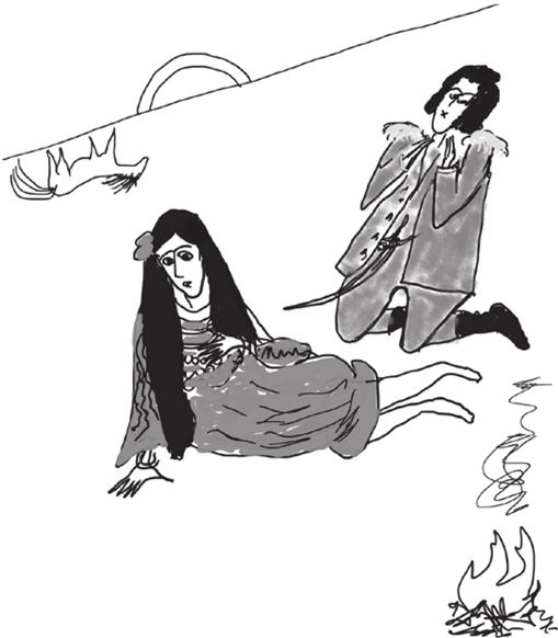 Здесь нет царя отечества и верыа только звезды в небе до утрагорят как блестки в шерсти у пантерычто греется у нашего костраубийцы с осторожною повадкойне поднимают просветленных глазна твой кинжал с наборной рукояткойи безмятежно смотрят мимо насно власти нет ни в посохе ни в жезлемолитвой небеса не отперетьони над нами чтоб они исчезлинам будет мало просто умереть. ▶«Нам будет мало просто умереть…»