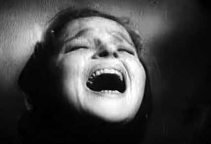 «Она защищает Родину» (1943) Фридриха Эрмлера представляет собой чистый случай сугубо аффективного воздействия на потенциального зрителя. В начале фильма режиссер дает «ударную» сцену с нацистами, которые расстреливают грузовик с ранеными красноармейцами, отнимают у главной героини ребенка и давят его танком. Сцена снята в откровенно экспрессионистской эстетике, казалось бы, прочно забытой в СССР со времен «Арсенала» (1929) Александра Довженко и «Обломка империи» (1929) самого Эрмлера[49]. Психологическое воздействие усилено контрастом с предыдущей последовательностью сцен, дающих панораму «счастливой жизни в довоенной советской деревне» и выдержанных в совершенно другой стилистической манере, вполне совместимой с требованиями сталинского «большого стиля»: хотя и здесь экспрессионистские крупные планы, геометричность и динамика уже дают о себе знать, исподволь готовя переключение с одной эстетики на другую. Возгонка зрительского аффекта обеспечивается серией эмпатийных эпизодов, в ходе которой героиня совершает тщательно выстроенную внутреннюю эволюцию. Между абсолютно раздавленной и опустошенной женщиной, которая случайно натыкается в лесу на группу односельчан, и зловещей Эринией с четкой и всепоглощающей установкой на кровную месть, помещена великолепно задуманная и снятая интермедия, в центре которой стоит событие «смены лица».