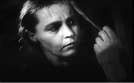 «Ударный» комплекс материнских образов перестает производить впечатление торопливого перебора всех возможных вариантов и выстраивается в логически выверенную иерархию с четко обозначенными верхней и нижней границами, для чего вводятся дополнительные законченные сцены, отсутствующие в литературном первоисточнике. Так, нижняя граница смыслов, сцепленных с образом матери, выстраивается вокруг Пуси, русской любовницы немецкого офицера, законченной оппортунистки, променявшей Родину на сытую жизнь[52]. Главный месседж этой роли обозначается в сцене разговора между ней и ее родной сестрой, сельской учительницей, которая, судя по всему, как-то связана с партизанами.