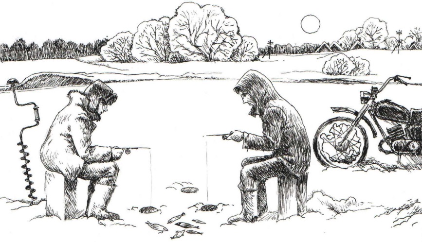 Друзья попеременно рыбачили и катались на мотоцикле по льду. Приоритет отдавали катанию, на их жаргоне это называлось «рокерить». «Рокернём?» – такой ёмкий вопрос означал: «Погоняем на мотоциклах?»