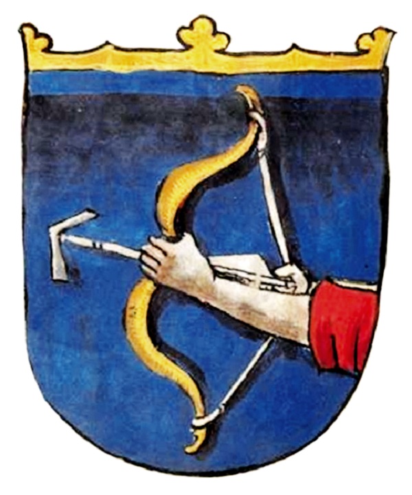 Правда, нигде и никогда не упоминалось, что этот ангел – именно Михаил, да и изображение было не сильно распространено. Гораздо чаще в качестве герба Киева выступала так называемая «куша» – изображение рук с луком или самострелом. Вот, например, изображение герба Киева из Гербовника Конрада Грюненберга (1480 год).