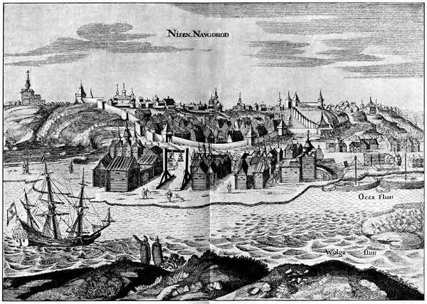 Нижний Новгород. Гравюра из книги А. Олеария «Описание путешествия в Московию». 1656 г.