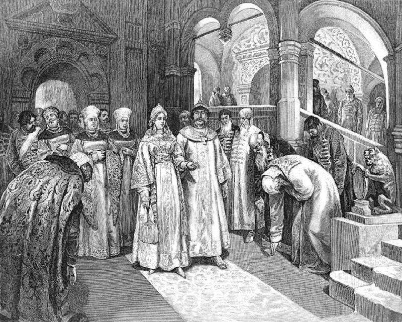 1526 г. Василий III, Великий князь Московский, вводит во дворец невесту свою, Елену Глинскую. Художник Клавдий Лебедев