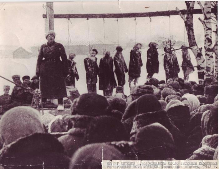 Митинг в освобожденном Волоколамске у места казни восьми бойцов в/ч 9903