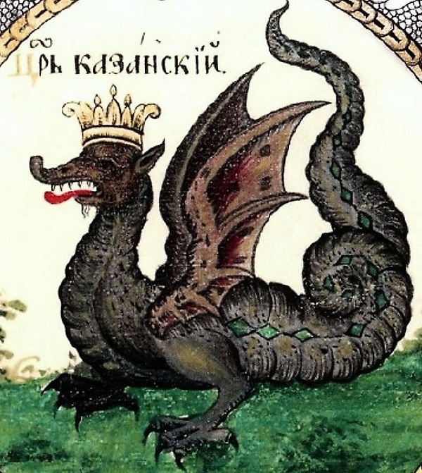 А на гербе Казани – геральдический дракон. Дракон по имени Зилант. Он всегда на двух ногах – что при Иване Васильевиче, что при Владимире Владимировиче. И всегда назывался драконом – разве что при втором Романове его разок «василиском» обозвали: «Печать Казанская на ней в каруне василиск, крылы золото, конец хвоста золот». Может быть, оттуда и взялись его куриные лапки – у василиска, как известно, тело петуха…