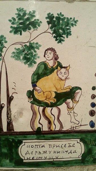 "Кота при себе держу, никуда не пущу". Изразец на печи-голландке. Российский этнографический музей. Выражение морды котика художнику удалось лучше всего.