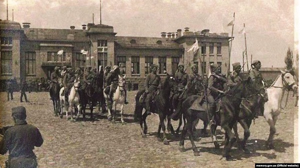 1-й Запорожский пеший полк имени гетмана Дорошенко армии УНР вступает в Бахмут, апрель 1918 года.