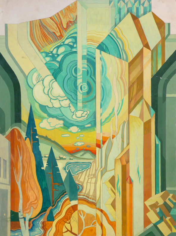 Эскиз росписи «Урал». Бумага, гуашь, акрил. 37,0х27,7