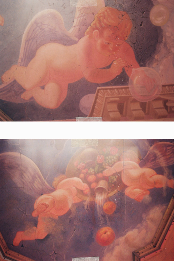 Фрагменты росписи потолка (венецианская штукатурка, акрил).