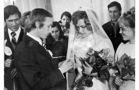 В кругу семьи с женой, родителями, братьями. Пионер. 1974 г.