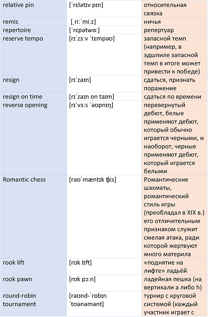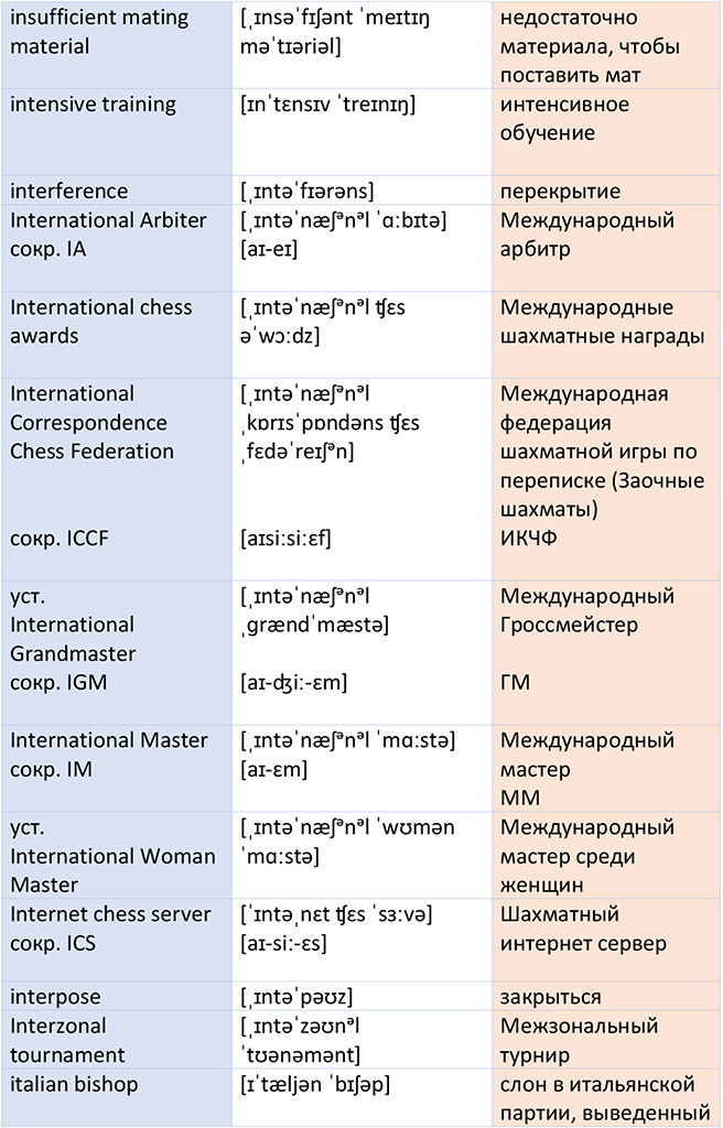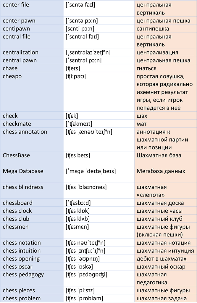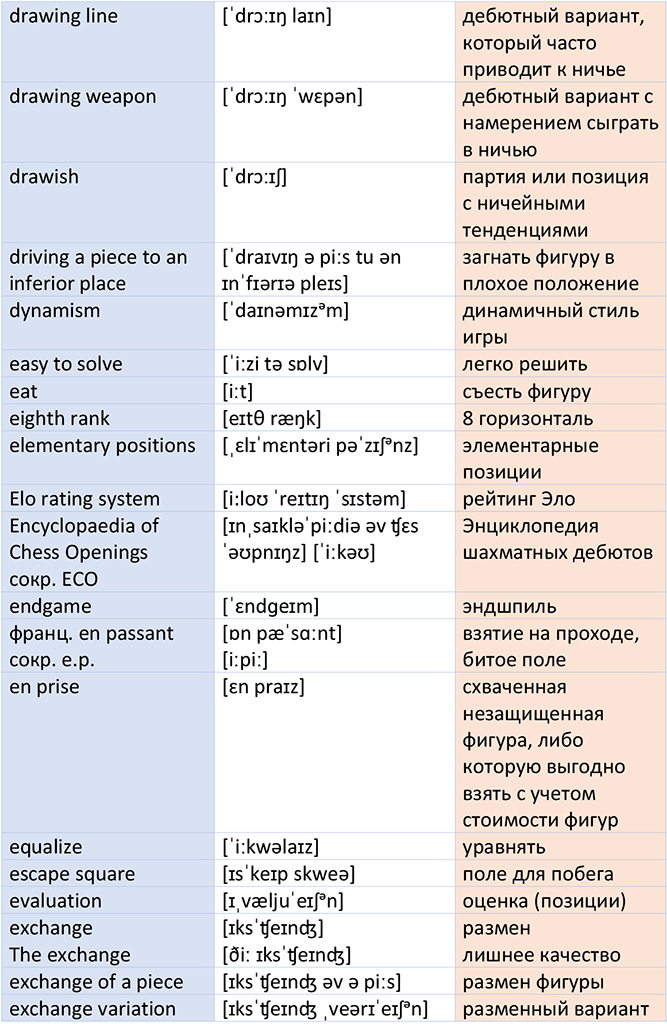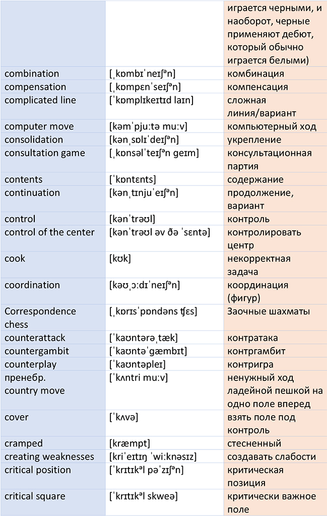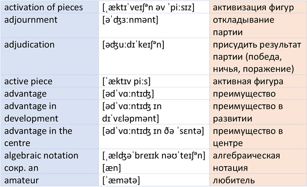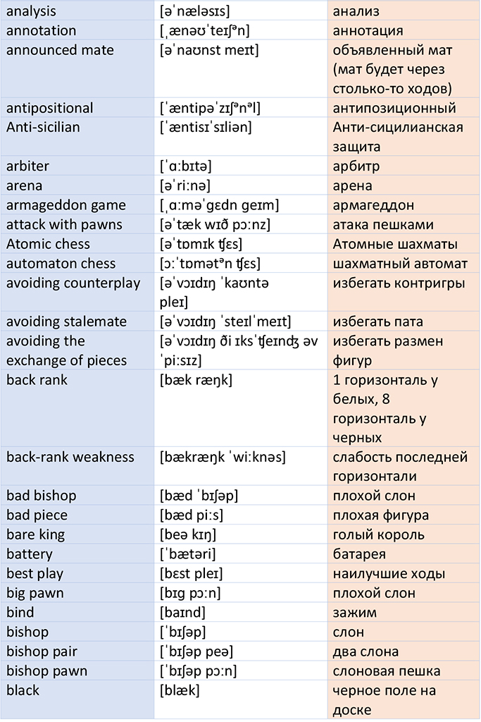 Глава 1. АНГЛО-РУССКИЙ СЛОВАРЬ ПО ШАХМАТАМ