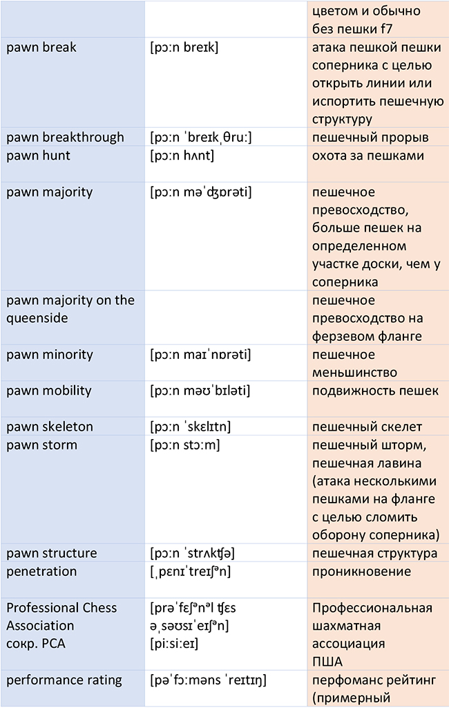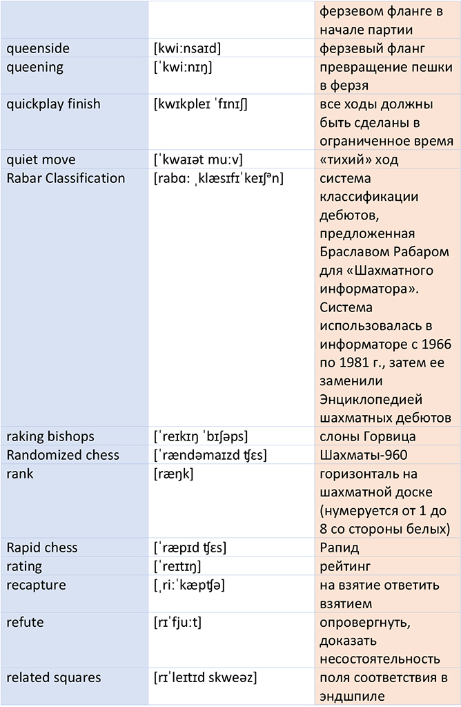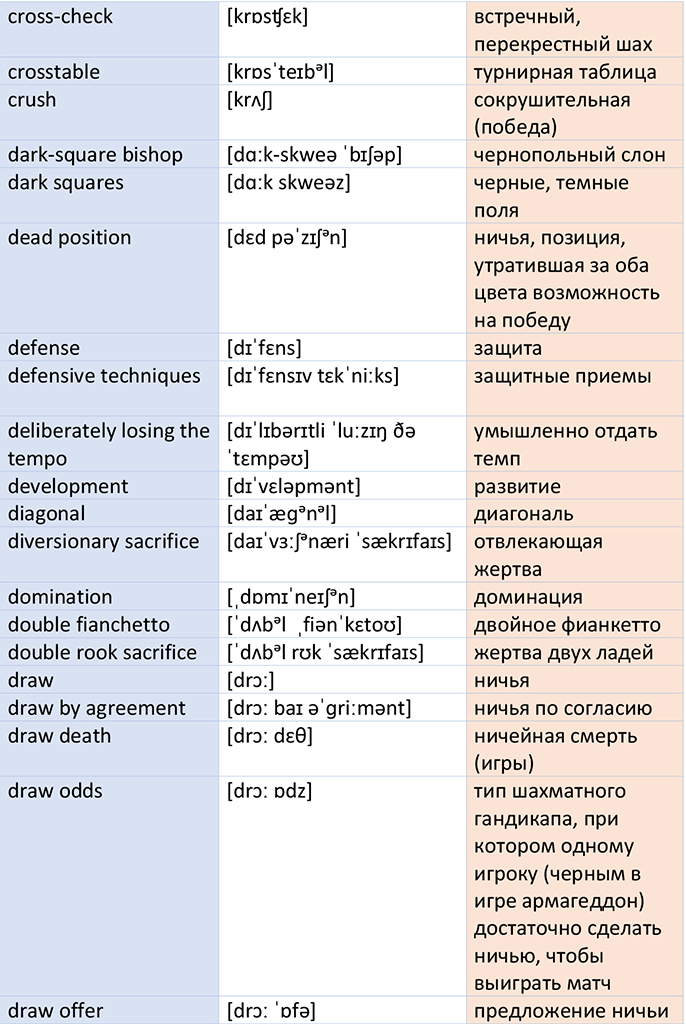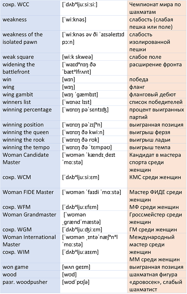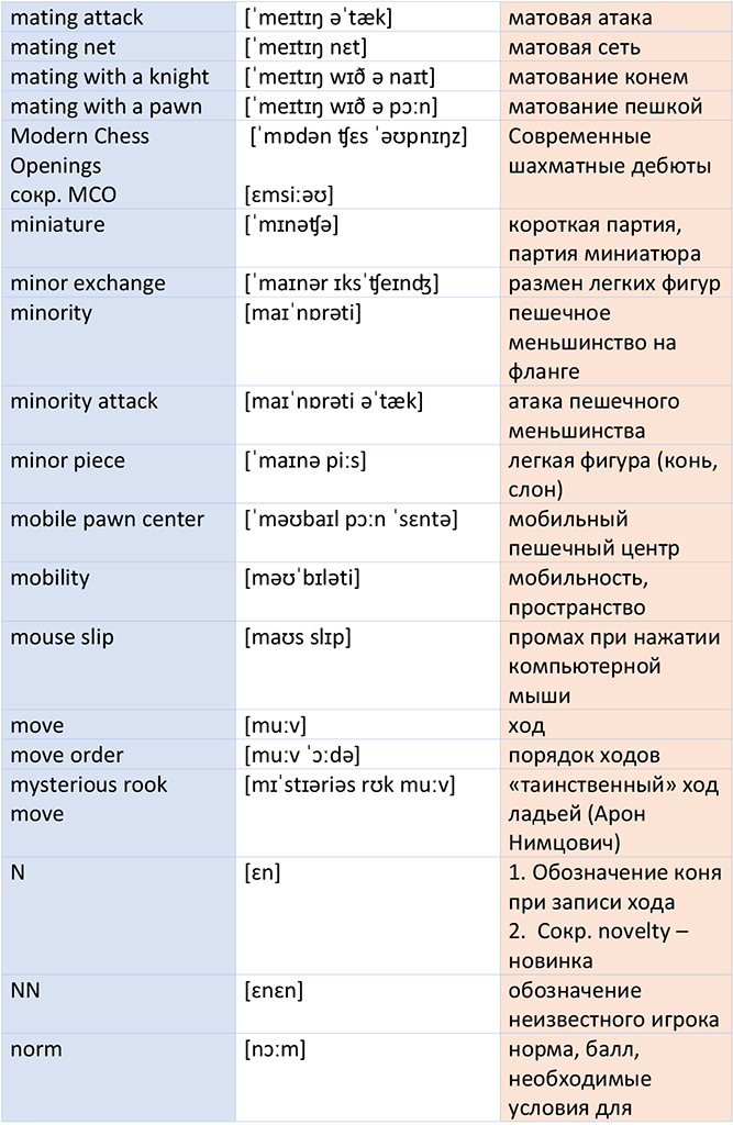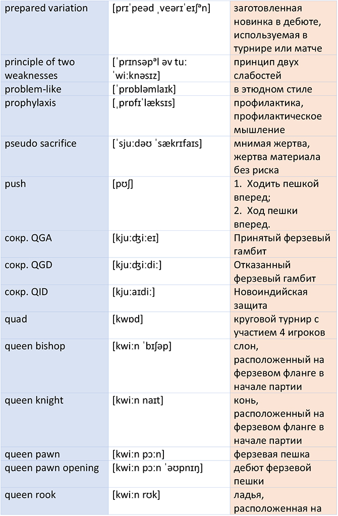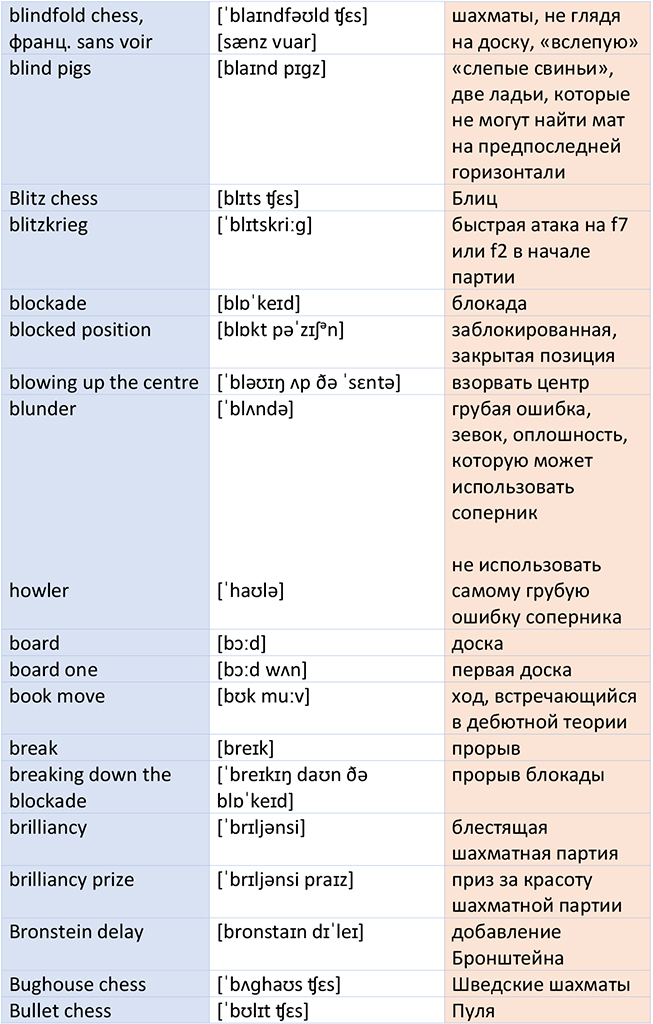 Глава 1. АНГЛО-РУССКИЙ СЛОВАРЬ ПО ШАХМАТАМ