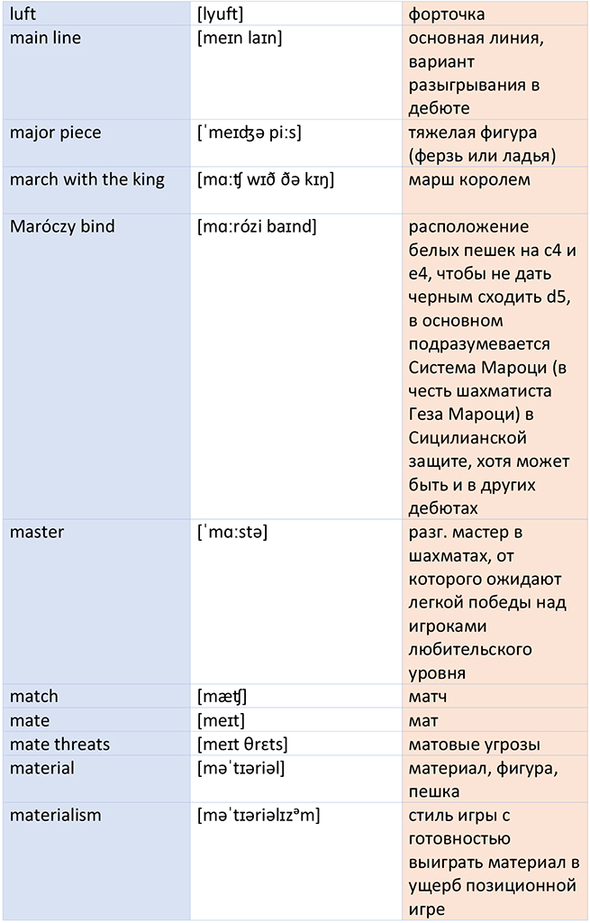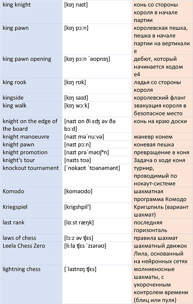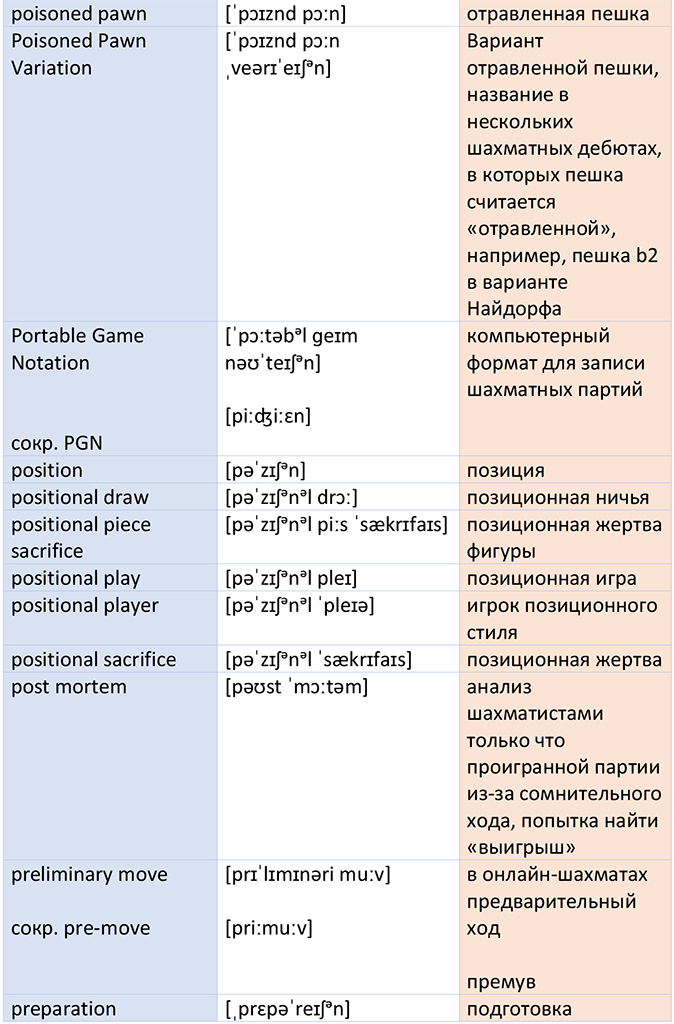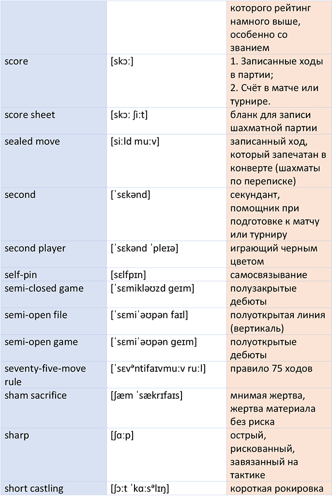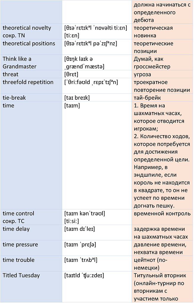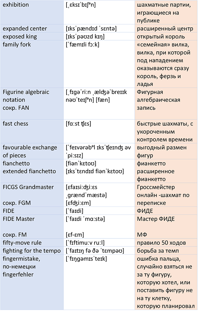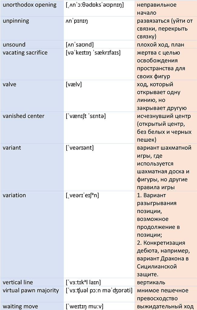 Глава 1. АНГЛО-РУССКИЙ СЛОВАРЬ ПО ШАХМАТАМ