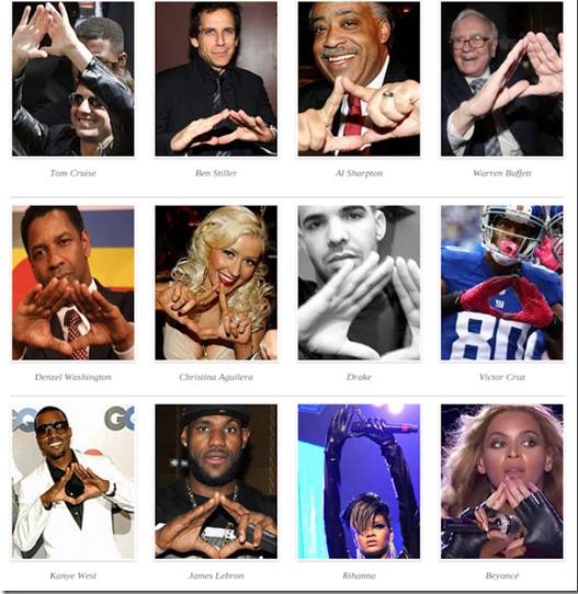 Многие читатели могут быть знакомы со странными жестами, которые часто демонстрируют знаменитости из индустрии шоу-бизнеса. За последние 20–25 лет эти жесты демонстрировались так много раз, что стали восприниматься как нечто совершенно обыденное. Один из этих наиболее распостраненных жестов – это когда две ладони руки образуют нечто вроде пирамиды или ромба. Вы можете заметить этот жест на многих фотографиях знаменитостей, и не только из шоу-бизнеса. Знаменитые спортсмены и люди бизнеса нередко позируют с ладонями, выставленными пирамидой в той или иной форме. Певицы Бейонсе, Рианна, рэперы Джей Зи, Эминем, звезда баскетбола Леброн Джеймс, актеры Бен Стиллер, Дензел Вашингтон и Том Круз, президент Дональд Трамп, один из самых богатых людей в мире Уоррен Баффетт, известны тем, что часто позируют с этим жестом.