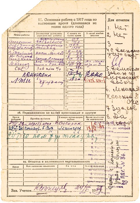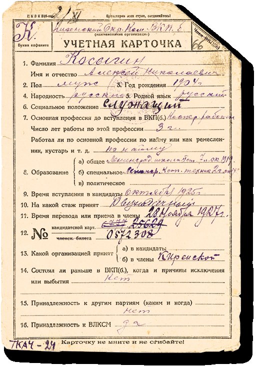 Учетная карточка члена ВКП(б) А. Н. Косыгина