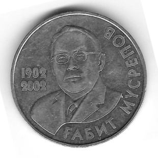 На реверсе монеты в центральной части расположено изображение Габита Мусрепова. Слева от портрета – дата рождения «1902» и под ней дата «2002» обозначающая год чеканки монеты. В левой части, по кругу расположена надпись «ҒАБИТ МҮСРЕПОВ».