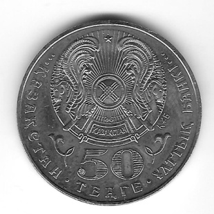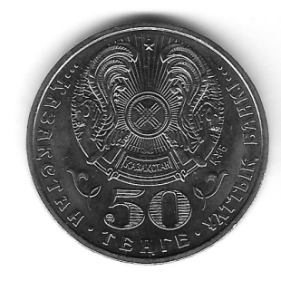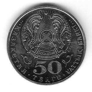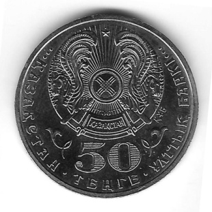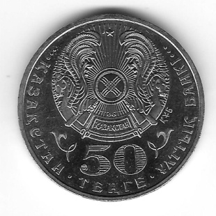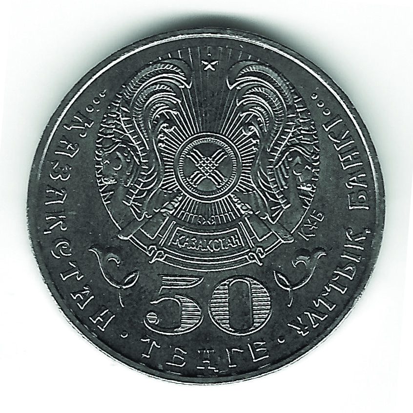 На аверсе монеты в верхней части изображен герб Республики Казахстан и под ним надпись «50 ТЕҢГЕ», расположенная в две строки. Слева и справа от номинала изображен элемент национального орнамента. По окружности надпись «ҚАЗАҚСТАН ҰЛТТЫҚ БАНКІ».