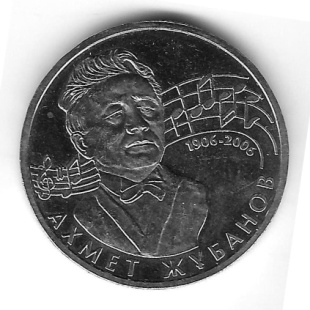 На реверсе монеты в центральной части, на фоне стилизованного нотного стана расположено изображение народного артиста Казахской ССР, лауреата государственной премии, академика АН РК, композитора Ахмета Жубанова. Справа от портрета – дата рождения «1906» и дата «2006» обозначающая год чеканки монеты. В нижнем секторе по кругу надпись «АХМЕТ ЖҰБАНОВ» на государственном языке. По окружности – выступающий кант.
