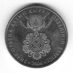 На реверсе монеты в центральной части расположено изображение звезды ордена «Алтын Қыран». По окружности надпись «АЛТЫН ҚЫРАН ОРДЕНІНІҢ ЖҰЛДЫЗЫ» на государственном языке, «ЗВЕЗДА ОРДЕНА» на русском языке и число 2006 обозначающее год чеканки монеты. Надписи и число разделены точками. По окружности – выступающий кант.