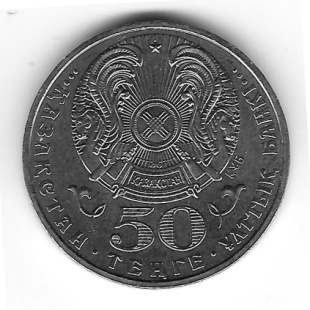 На аверсе монеты в верхней части изображен герб Республики Казахстан. В нижней части число «50» и под ним надпись «ТЕҢГЕ» обозначающие номинал монеты. Слева и справа от номинала зеркально изображен элемент национального орнамента. По окружности надпись «ҚАЗАҚСТАН ҰЛТТЫҚ БАНКІ» на государственном языке и выступающий кант.