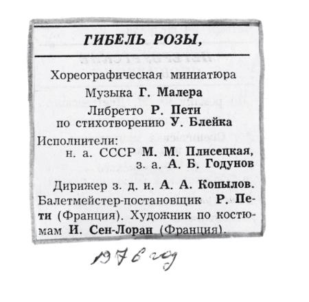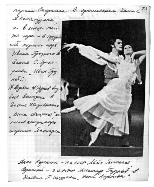 Он всегда хотел уехать на Запад, это была его идея фикс»… В своем детском дневнике я записал: «На сцене Плисецкая и Годунов, и я счастлив. Плисецкая такая разная: звонкая, задиристая, свободолюбивая в "Кармен-сюите" и нежная, трагичная в "Розе". Очень хочу увидеть ее еще!».