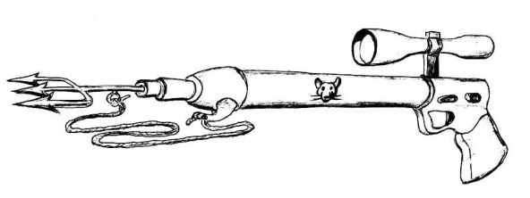 Крыса натянула ласты, сняла очки и надела маску с трубкой. Затем взяла в лапы ружьё и полезла в воду.