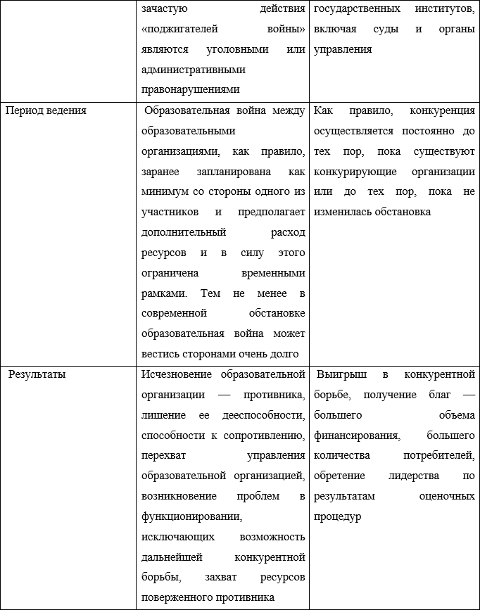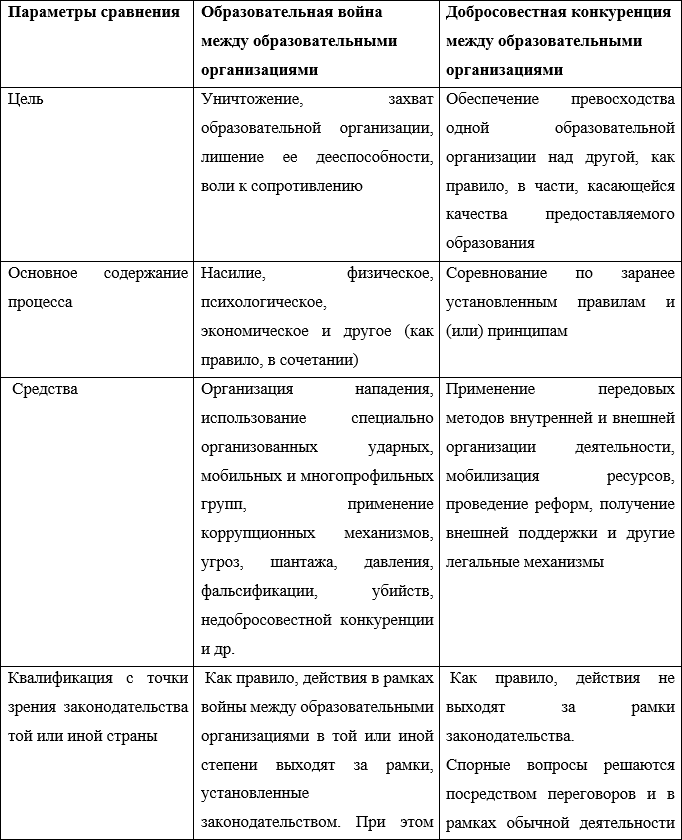 Тем не менее попробуем сформулировать основные отличия образовательной войны между двумя образовательными организациями и такого явления, как добросовестная конкуренция между ними.