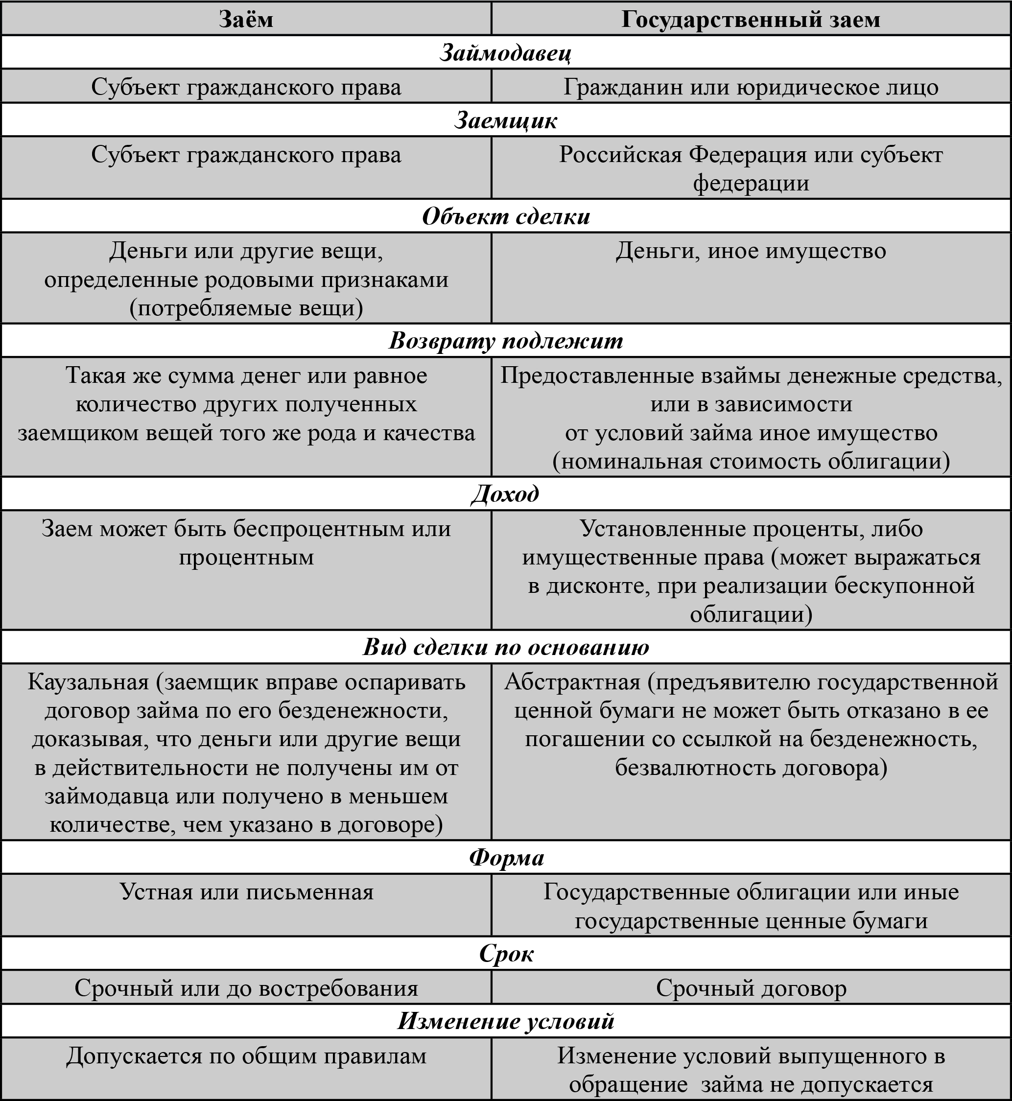Несмотря на изначальную общность и сходность регулируемых отношений, термины заем и кредит, с правовой точки зрения не могут употребляться в качестве синонимов, имея специальную область применения. Данное однозначное положение обусловлено четкими определениями, данными кредиту и займу в гражданском законодательстве, чего нельзя сказать относительно аналогичных отношений с участием государства.