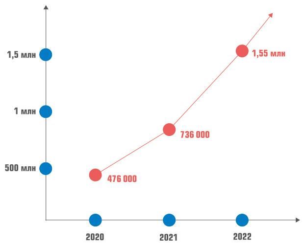 Рис. 2. Количество выданных дарконов в 2020–2022 гг. (по данным https://detaly.co.il)