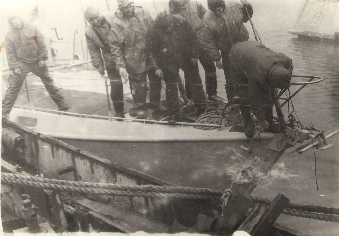 Близилось к завершению строительство первой металлической лодки, но и октябрь уже подходил к концу. Первые белые мухи кружились в воздухе, когда яхту наконец выкатили из цеха и начали готовить к отправке.
