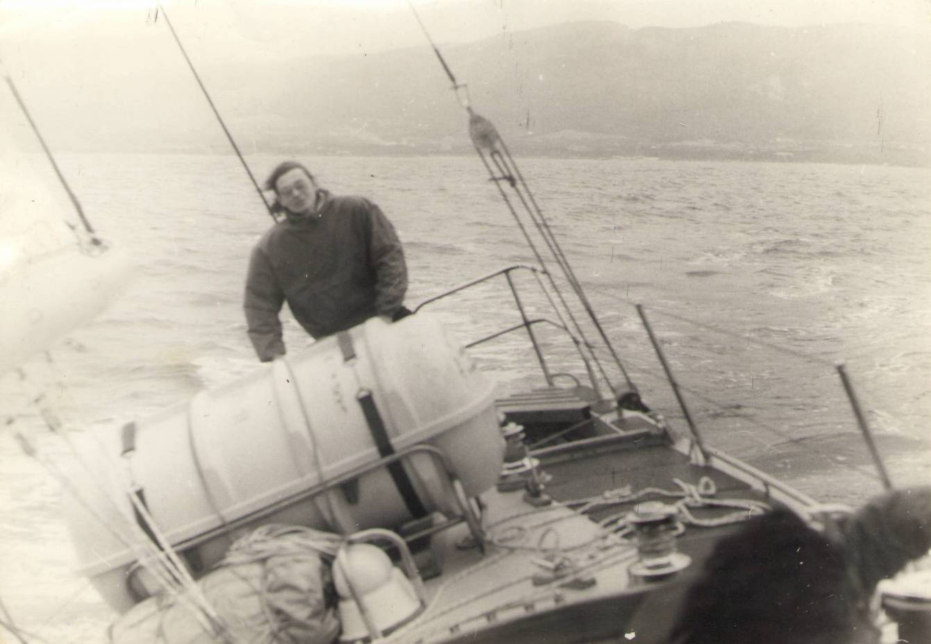 Начал рулить я. Непромоканец, сшитый из легкой прорезиненной тканешки, от брызг и воды, периодически захлестывающей кокпит, защищал плохо, к тому же, было довольно холодно, и дул пронизывающий ветер, но больше всего, конечно, народ страдал от качки. Более-менее нормально себя чувствовали трое – Коля Юрьев, Толя Дорофеев, и я. Саня, помучившись полчаса рядом со мной в кормовом кокпите, поменяв за это время сотню поз, ушел вниз. Ближе к концу моей полувахты Юрьев поманил меня, принял руль, и прокричал в ухо: «Иди, полюбуйся на своего напарничка!»