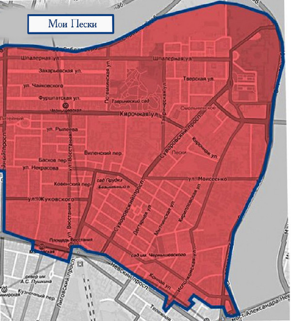 А если быть совсем уже точным, своей территорией я числю превосходящий размерами исторические Пески участок Центрального района, границы которого – изгиб Невы, Литейный и Невский. Конечно, границы эти условны, так что во время своего мысленного путешествия по мере надобности и вполне безнаказанно мы будем их нарушать.