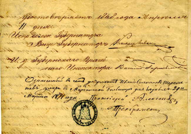 Из аттестата ст. советника И.С. Шереметевского