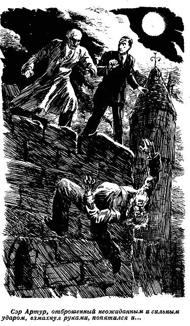 Тогда Хаггер выбросил длинные, тяжёлые руки со сжатыми кулаками и, помогая себе всем телом, ударил Форрингтона в грудь. Сэр Артур, отброшенный неожиданным и сильным ударом, пытаясь найти равновесие, взмахнул руками, попятился и исчез…