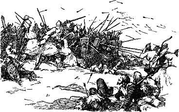 Видя близких и ныне беспомощных убийц, погубивших их кровных, биармины не утерпели. Первыми бросились кудесники в доспехах китового уса, числом восемнадцать человек, за ними – все многолюдство.