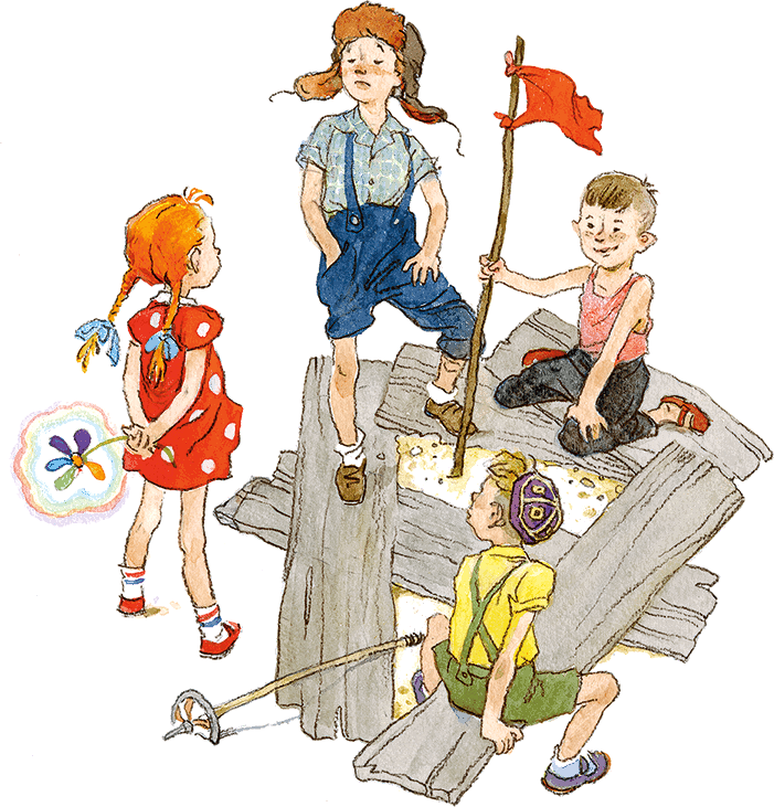 Пришла Женя во двор, а там мальчики играют в папанинцев: сидят на старых досках, и в песок воткнута палка.