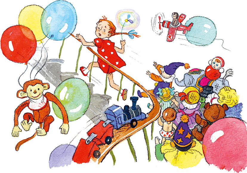 И в тот же миг откуда ни возьмись со всех сторон повалили к Жене игрушки.