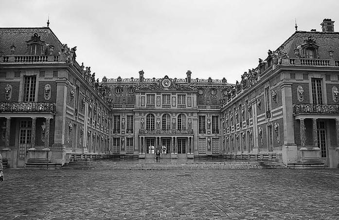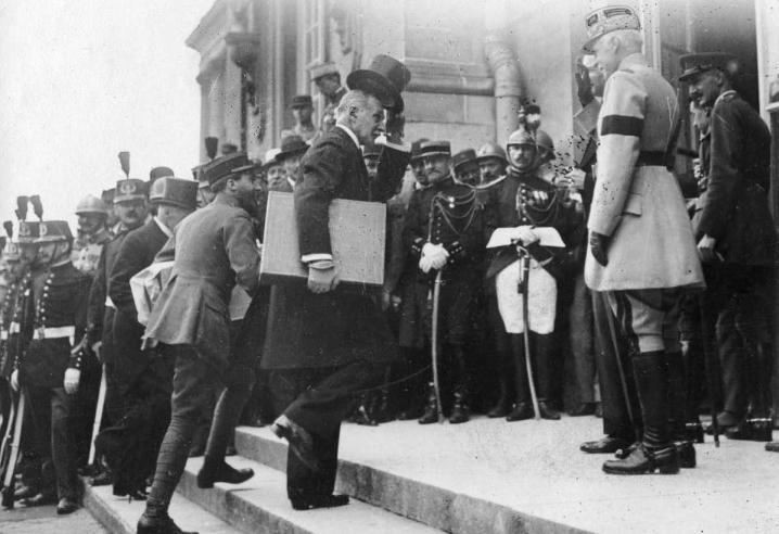 Чиновник с коробкой с мирным договором у входа в Версальский дворец