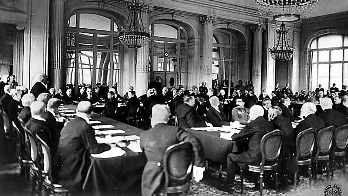 Первая мировая война началась 28 июля 1914 года с объявления войны Австро-Венгрией Сербии и закончилась 11 ноября 1918 года, когда было заключено перемирие между Антантой и Германией[5]. Основные контуры послевоенного устройства мира были определены Парижской мирной конференцией[6], главной целью которой была выработка мирного договора. Такой договор был подписан 28 июня 1919 года в Версальском дворце во Франции, поэтому он получил название Версальского мирного договора. Таким образом, ровно через пять лет после убийства эрцгерцога Франца Фердинанда произошло официальное завершение Первой мировой войны 1914–1918 годов. Сторонами Версальского мирного договора были, с одной стороны, страны-победительницы, с другой – капитулировавшая Германия. Позднее были подписаны мирные договоры и с другими странами, воевавшими на стороне Германии[7]. Версальский мирный договор вступил в силу 10 января 1920 года, после ратификации его Германией и четырьмя главными союзными державами – Великобританией, Францией, Италией и Японией.