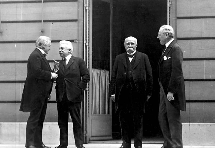 «Большая четвёрка» Версаля (слева направо): Дэвид Ллойд Джордж, Витторио Эмануэле Орландо, Жорж Клемансо, Вудро Вильсон