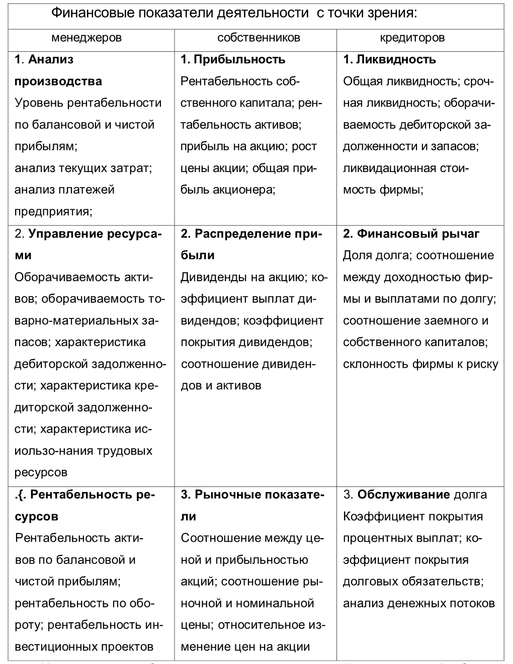 Таблица 2.2 – Основные системные показатели деятельности организации с различных точек зрения /17/, с. 10-11