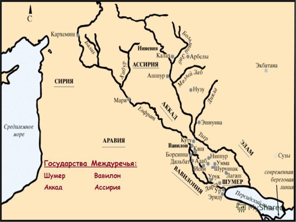 В нач. III тысячел. до н. э. на территории Двуречья возникают первые государства. Каждое государство включало несколько союзных городов, которыми управляли представители рабовладельческой знати «энси» «заместители бога» жрецы. И хотя общинники все еще составляли большинство населения, их ранее добровольные взносы в общеплеменную казну и работа на общественные нужды теперь превращались в обязательные государственные налоги и в тяжелую повинность, в работу на эксплуататорскую верхушку общества и на нужды находившегося в ее руках государственного аппарата. Положение раба было чрезвычайно приниженным, его часто называли «не поднимающий глаз», то есть смотрящий вниз перед свободными людьми. Рабов приносили в жертву богам и умершим царям (верующие, зачем бог придумал это?).