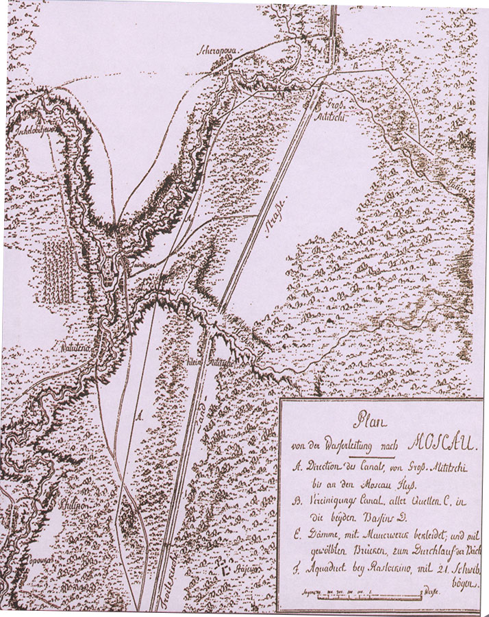 Мытищинский водопровод начал эксплуатироваться с 1804 года и более 100 лет снабжал водой жителей Москвы. За все время эксплуатации он неоднократно реконструировался. К изыскательским работам привлекались: Фридрих Вильгельм Баур – первый автор проекта Мытищинского водопровода и организатор его строительства, начатого по Указам Екатерины II; И. Герард, Н. И. Яниш, А. И. Дельвиг, П. В. Максимов, Н. П. Зимин, С. Н. Никитин, Г. А. Траутшольд, К. П. Карельских, С. А. Озеров, К. Э. Лембке, Е. К. Кнорре, В. Г. Шухов и другие.