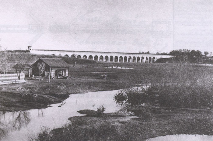 Вокруг истории строительства акведука тоже ходили легенды. Народная молва окрестила его как «мост-миллионник». Поговаривали, что Екатерина II отпустила на его строительство ровно миллион рублей. И что совсем невероятным было для России – уложились в смету рас-ходов, а на сэкономленные (!) несколько десятков рублей будто бы хозяин работ выставил мастеровым бочку вина. Существует и еще одна легенда, что якобы при строительстве моста для приготовления известкового раствора был израсходован миллион яиц. Это, конечно, досужие разговоры, а вот акведук и по сей день своим величественным видом украшает округу и является памятником зодчества и инженерного искусства. Нижняя часть его опор покоится на мощном кирпичном фундаменте, а своды по наружной части облицованы белым камнем «взамок». Верхний ложемент, по которому проходили все три трассы водовода, в 1892 году был надстроен из кирпича мытищинского завода Челнокова.