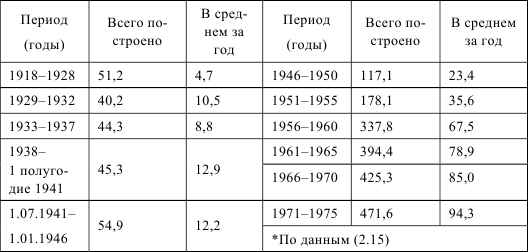 В табл. 2.1 приведены объемы нового жилищного строительства в СССР в период с 1918 по 1975 г.