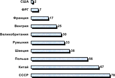 К 1990 г. жилищный фонд СССР составлял 4,6 млрд кв. м общей площади. В среднем на одного жителя приходилось 16 кв. м общей и 10,8 кв. м жилой площади /2.198/. При этом большая часть жилфонда СССР находилась в собственности государства, в то время как в развитых экономических странах государство владеет от 2 (США) до 38 (Швеция) процентами жилья (см. рис. 2.1) /2.137/.