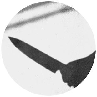 Она смотрит на мужчину, не видя его, не зная, страшно ли ему. Теперь он увидел нож и разевает рот, как будто хочет закричать. Однако ни один звук не срывается с его губ.